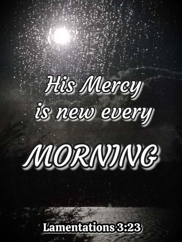 Lamentations 3:23 Posted by bethelpcusa on May 24, 2022 Share this: Click to share on X (Opens in new window) X Click to share on Facebook (Opens in new window) Facebook Like Loading... Related